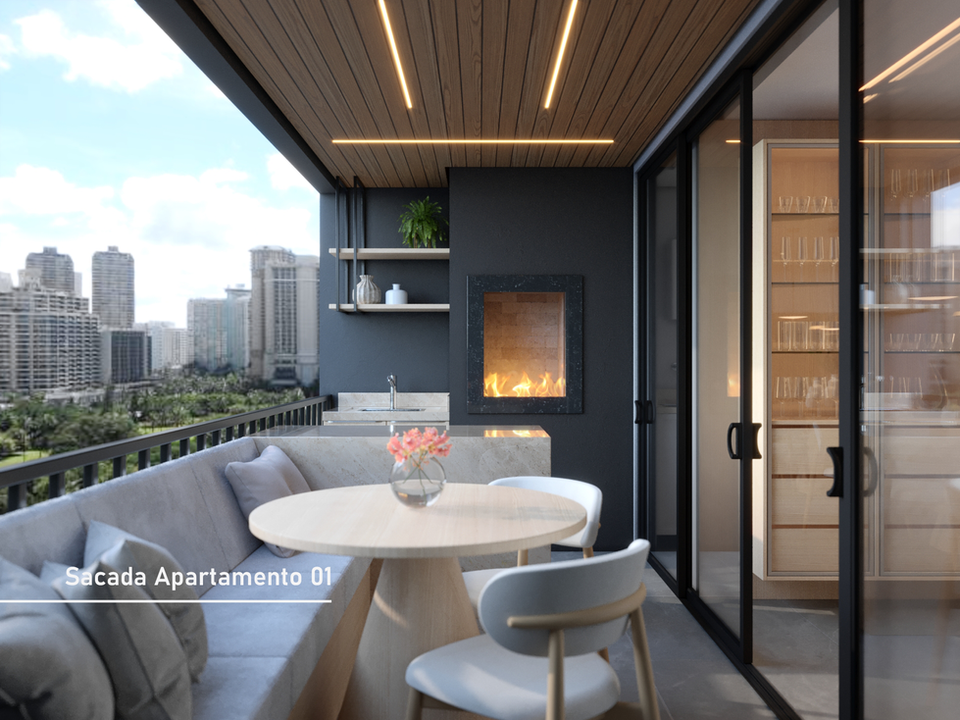 Sacadas com churrasqueira à carvão, alto padrão de acabamento e infraestrutura para automação total.